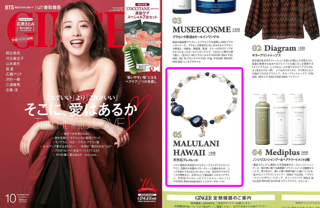 2015.05.26 雑誌『 GINGER 7月号 』MALULANI HAWAII 表参道店が紹介されました。